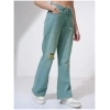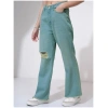 Fashionable Women’s Blue Torn Flared Jeans