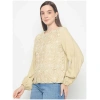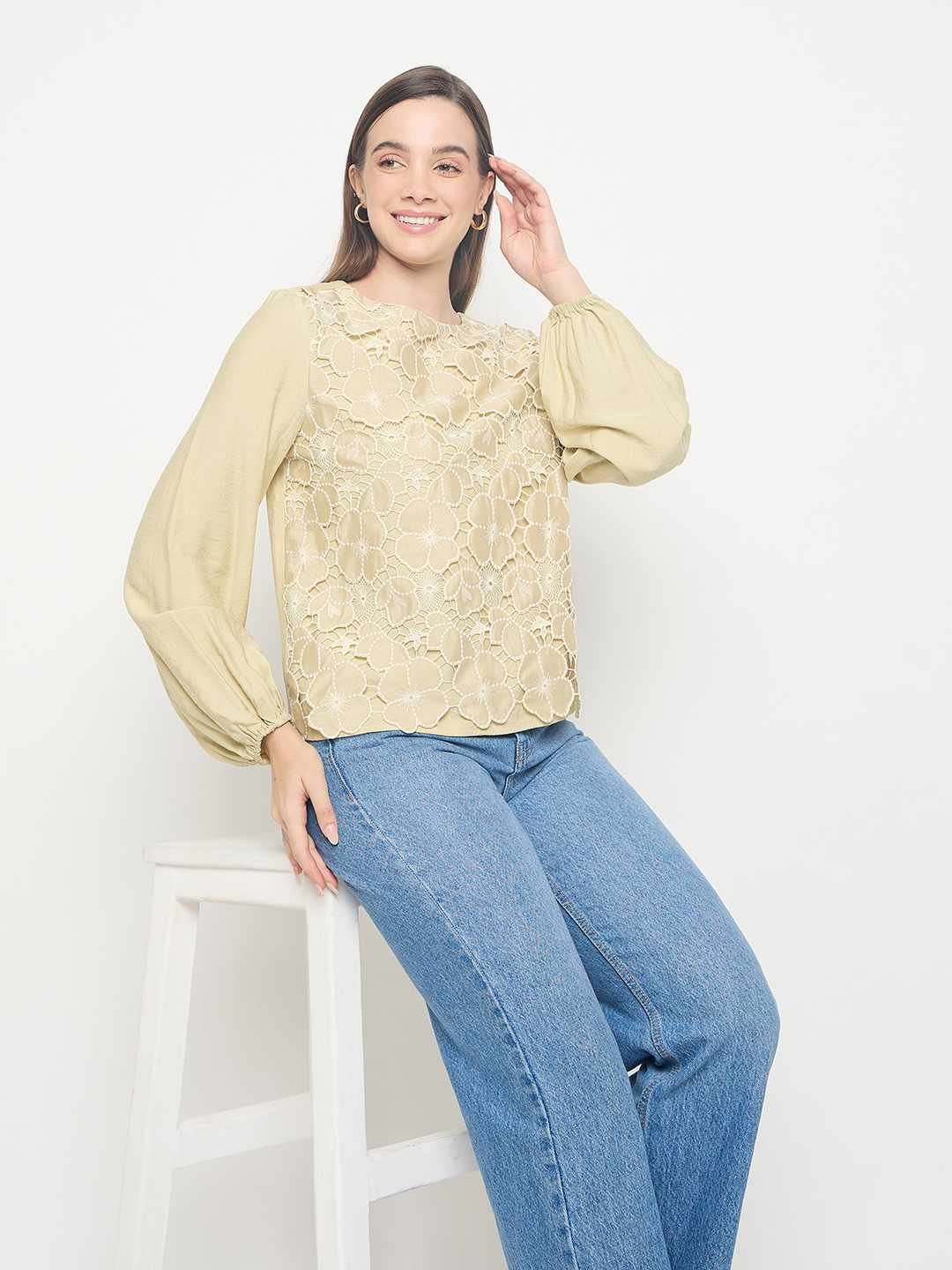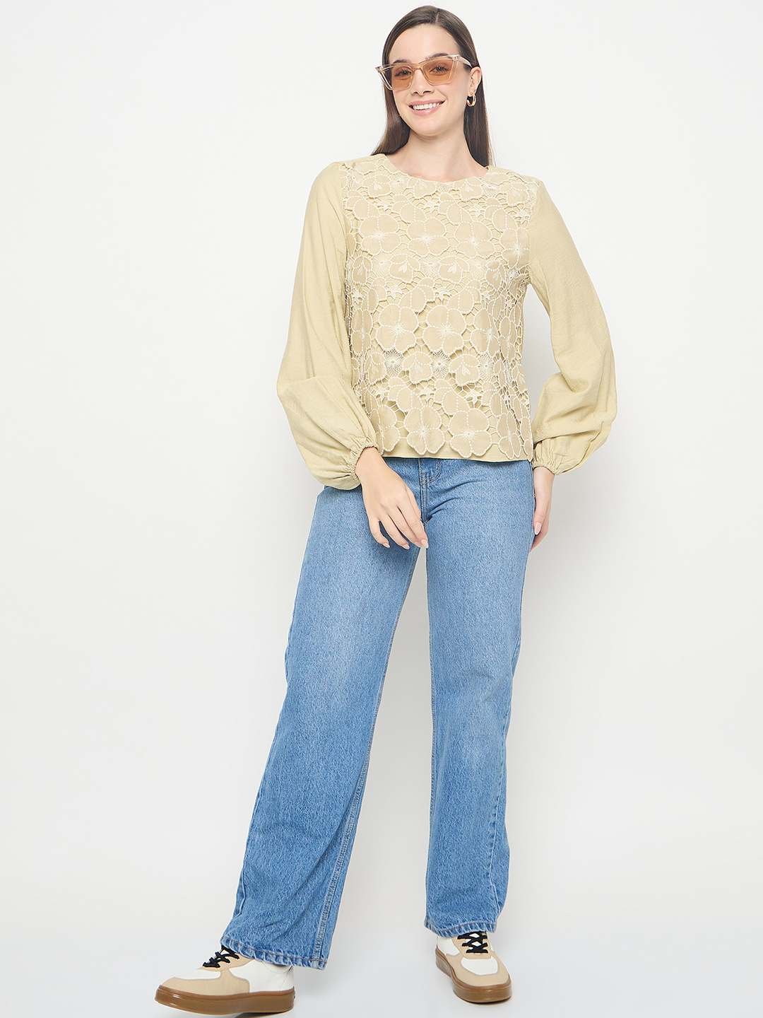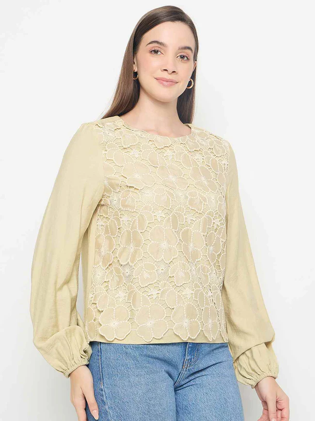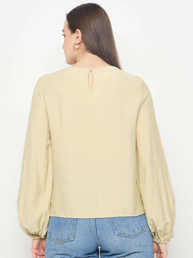 Crafted from soft, breathable fabric, this top ensures all-day comfort while maintaining a polished and stylish appearance. The lightweight material drapes effortlessly on the body, creating a flattering fit that complements all shapes and sizes. The layered detailing adds depth and volume without feeling bulky, giving it an airy, sophisticated look. Whether paired with jeans, trousers, or a skirt, this top instantly elevates your outfit with a blend of freshness and flair.