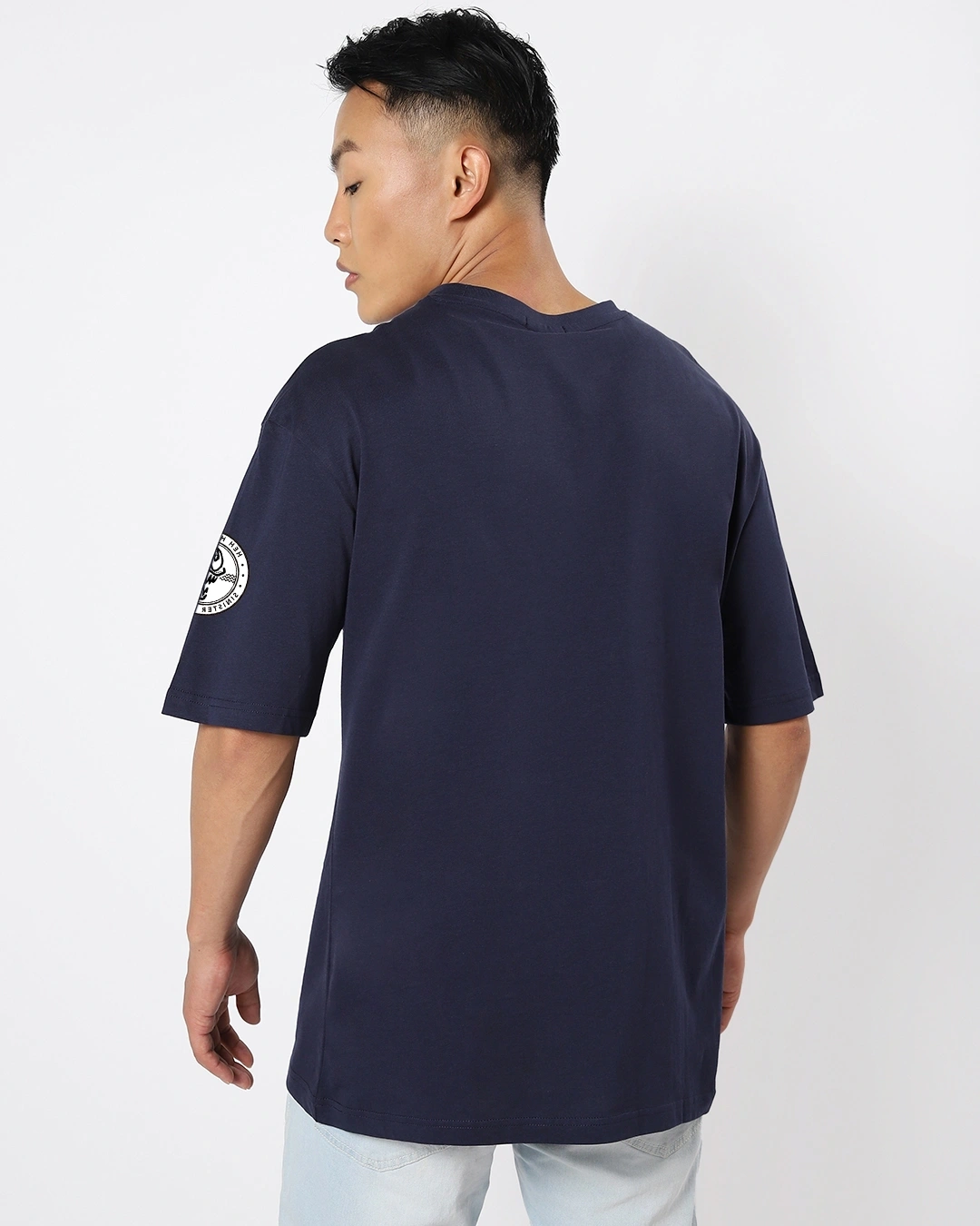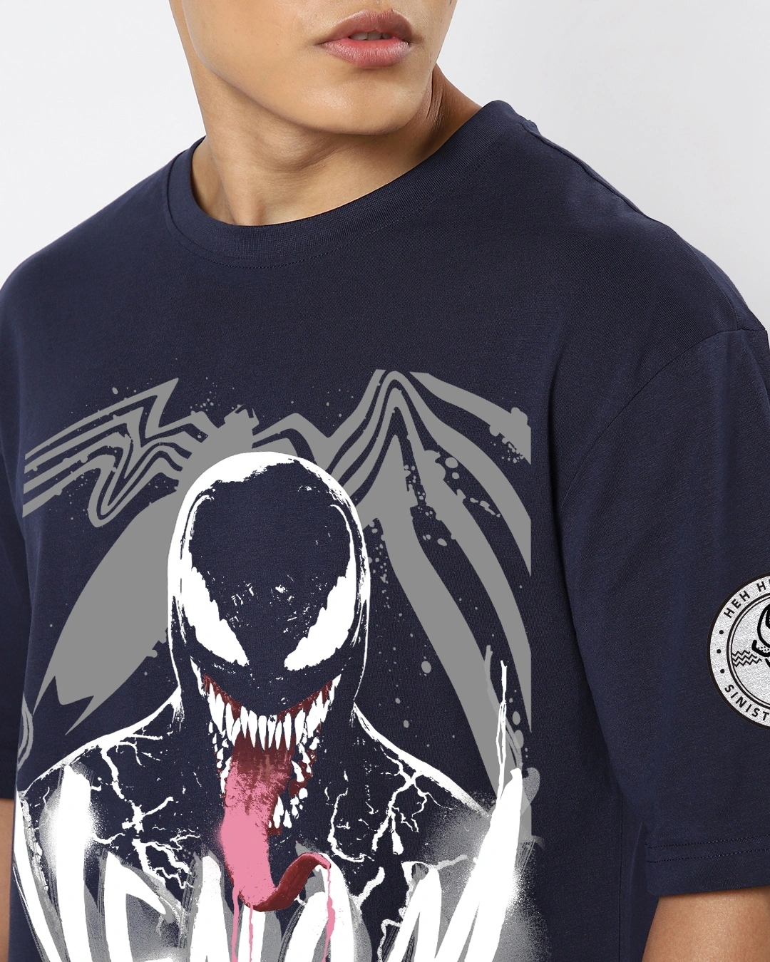 Navy Blue Venom Graphic Printed Oversized T-shirt