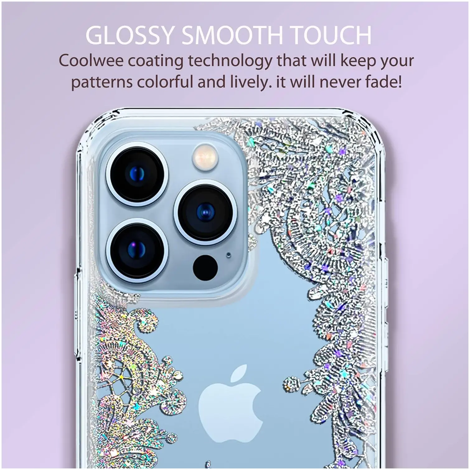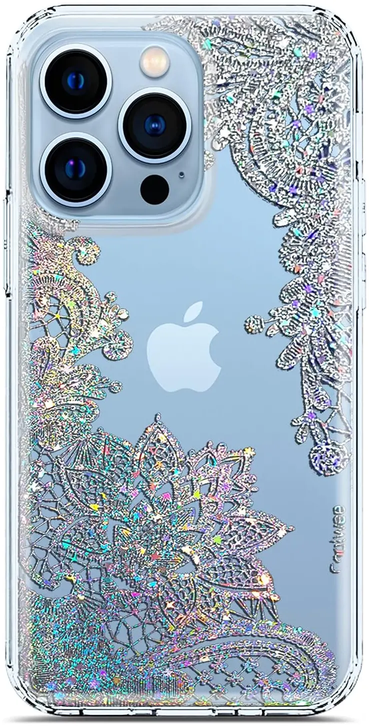 - [Shiny crystal lace never fade] 3D metallic glitter lace is elegant, more of iridescent sparkle in the sun or other light sources with the reflection of your phone color, eye catching, holographic, beautiful bling mandala design, showcase your individuality and be the center of attention with this clear glitter case, design for charming girls women looks cool and attractive fashion trend phone case