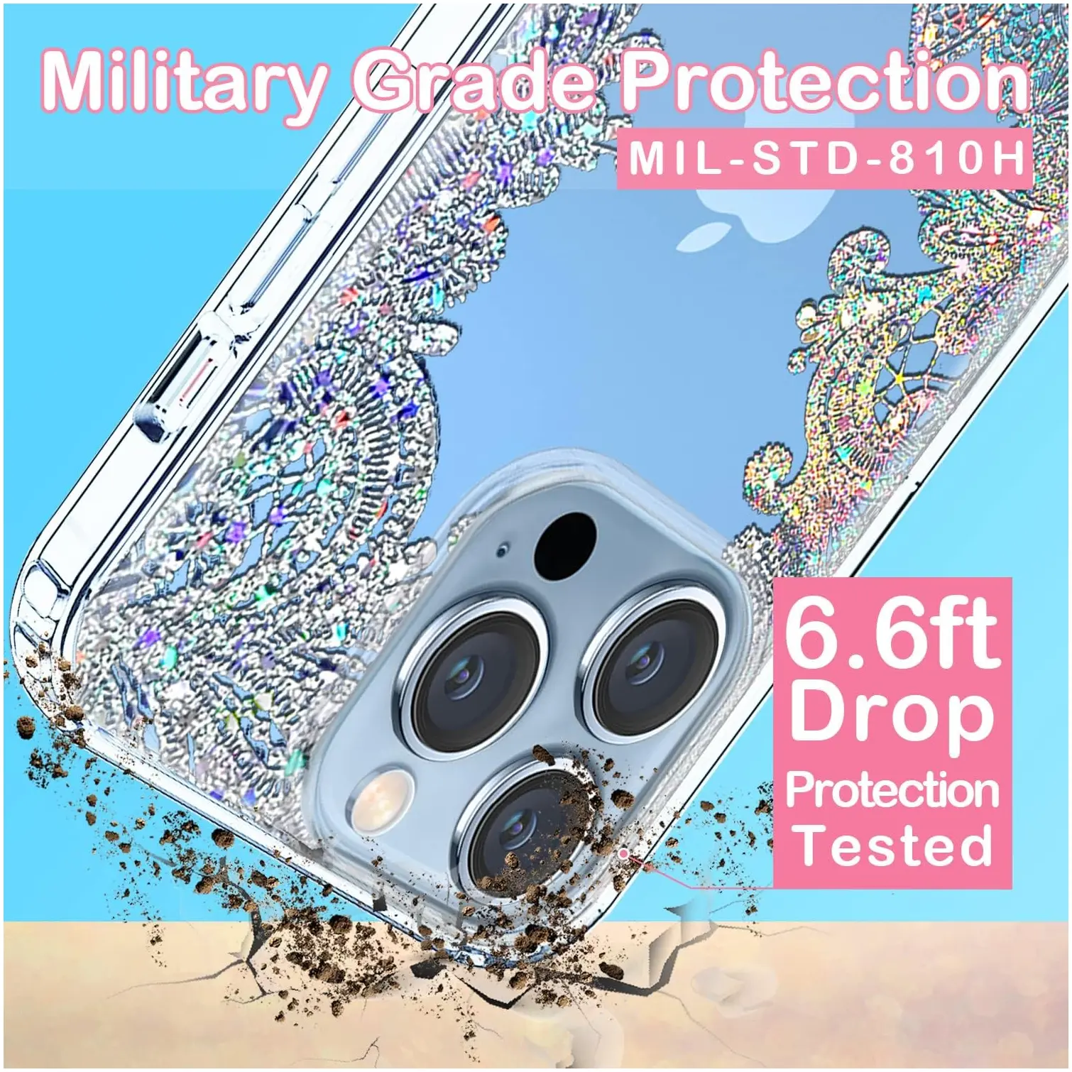 - Certified Military Grade Drop Protection standard (MIL-STD-810H), Clear glitter case compatible with Apple iPhone 13 Pro Max 6.7 inch (2021) only, NOT for iPhone 11 Pro Max 6.7 inch (2019), NOT for iPhone 13 6.1 inch, NOT for iPhone 13 Pro 6.1 inch, support wireless charging