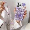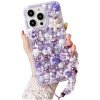 Cute Luxury 3D Crystal Rhinestone Flowers Diamond Pearl With Lanyard Wrist Strap Case Cover For iPhone 14 Pro Max