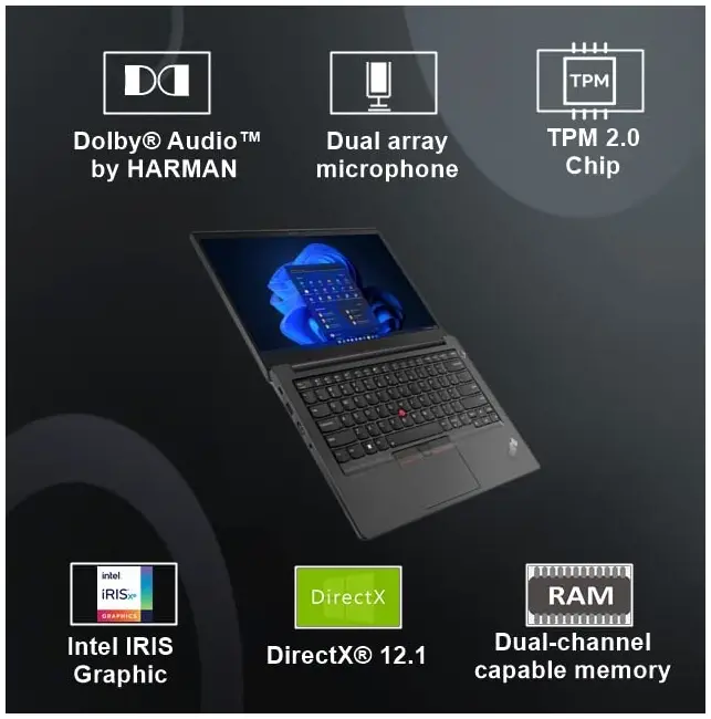 - Display: 14-inch (35.56 cm) screen with (1920X1080) Full HD 250 Nits Antiglare Display | Graphics: Intel Iris Xe Graphics comes with DirectX 12.1 enables amazing graphics | Stereo speakers, 2W x2, Dolby Audio by HARMAN