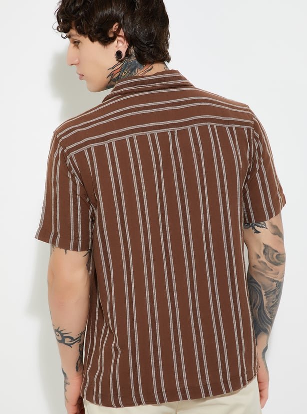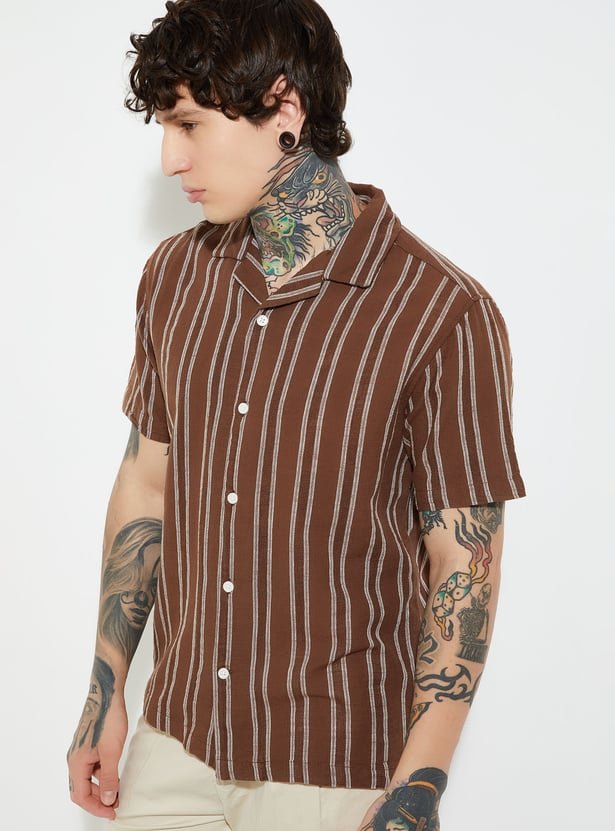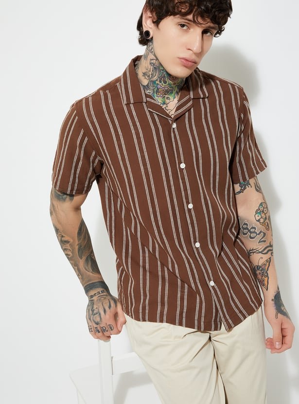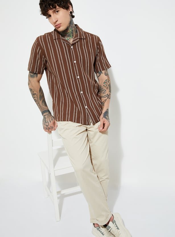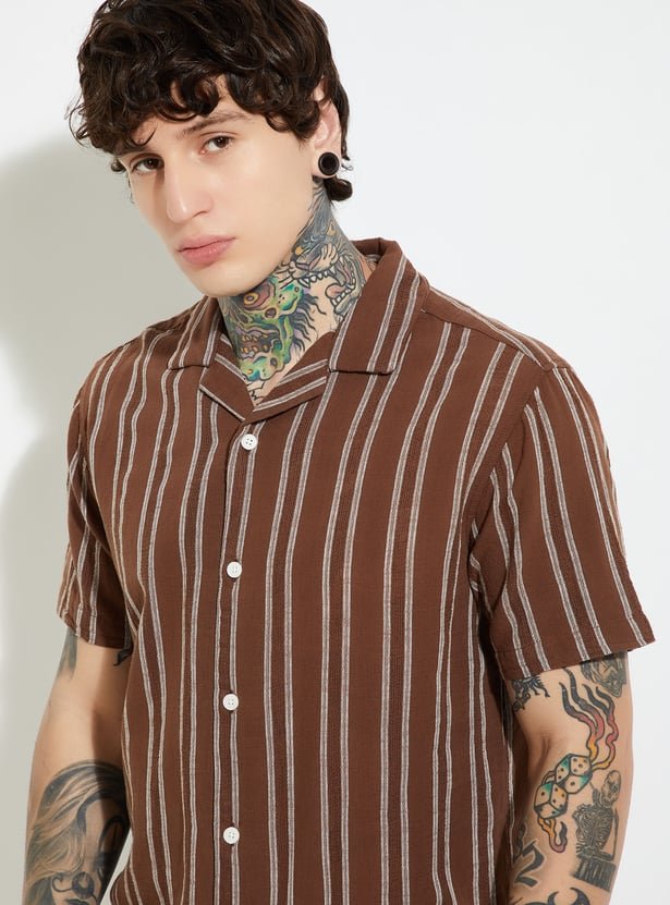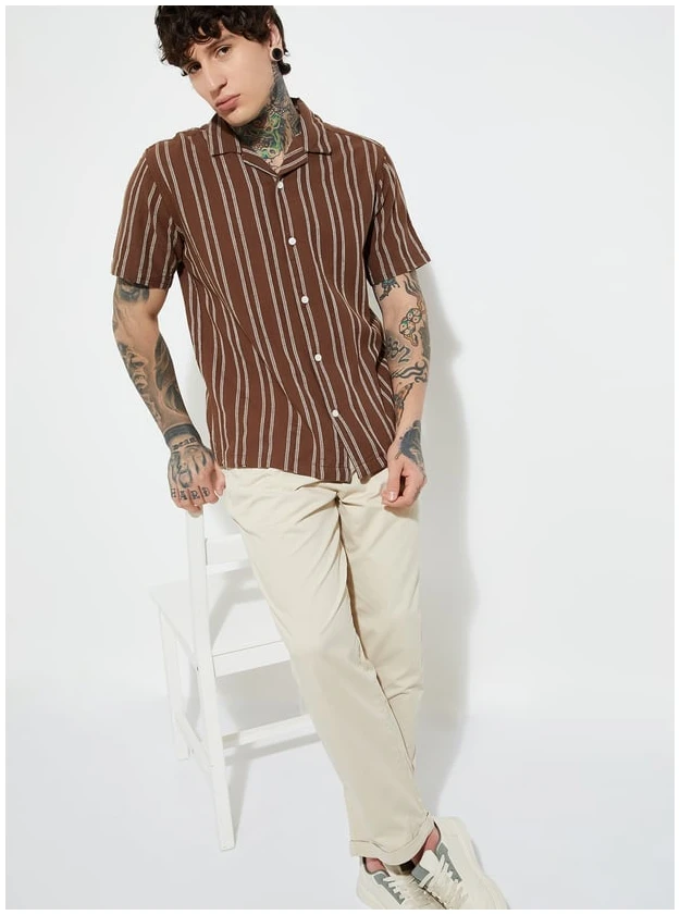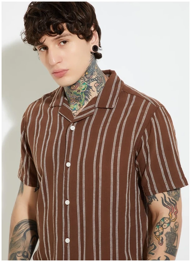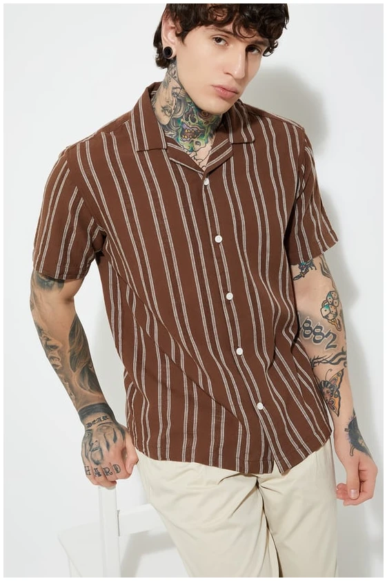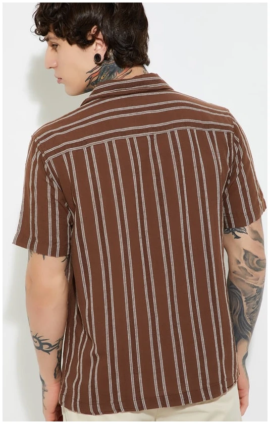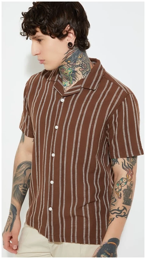 Whether you’re sipping cocktails on a holiday or bringing tropical flair to your weekend wardrobe, this shirt embodies effortless comfort and contemporary elegance. The Men Striped Regular Fit Resort Shirt isn’t just a piece of clothing — it’s a statement of relaxed confidence and timeless resort fashion.