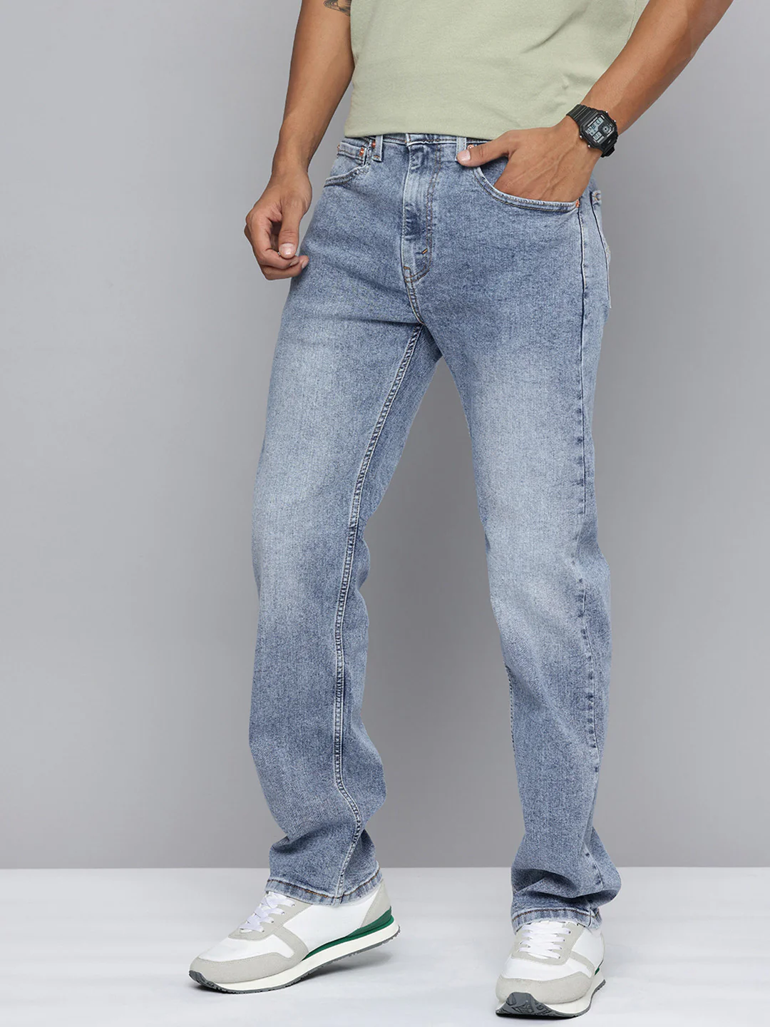 Mens Light Indigo Straight Fit Mid Rise Jeans Designed for a Versatile Casual Look