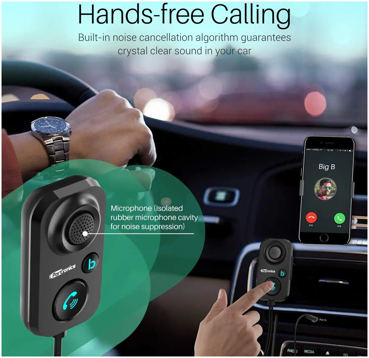 Drive Smart, Drive Safe: Stay focused on the road with the Portronics AUTO 12 in-Car Bluetooth Receiver. It’s your trusty companion for hands-free calling, allowing you to keep your hands on the wheel and your attention where it matters most.