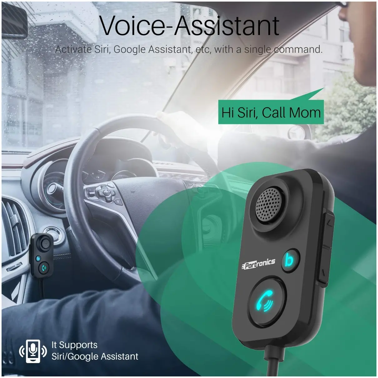 - [VOICE ASSISTANT] : Equipped with voice-assistant technology, easily activate Siri, Google Assistant, etc, with a single voice command, and never be disturbed while driving.
