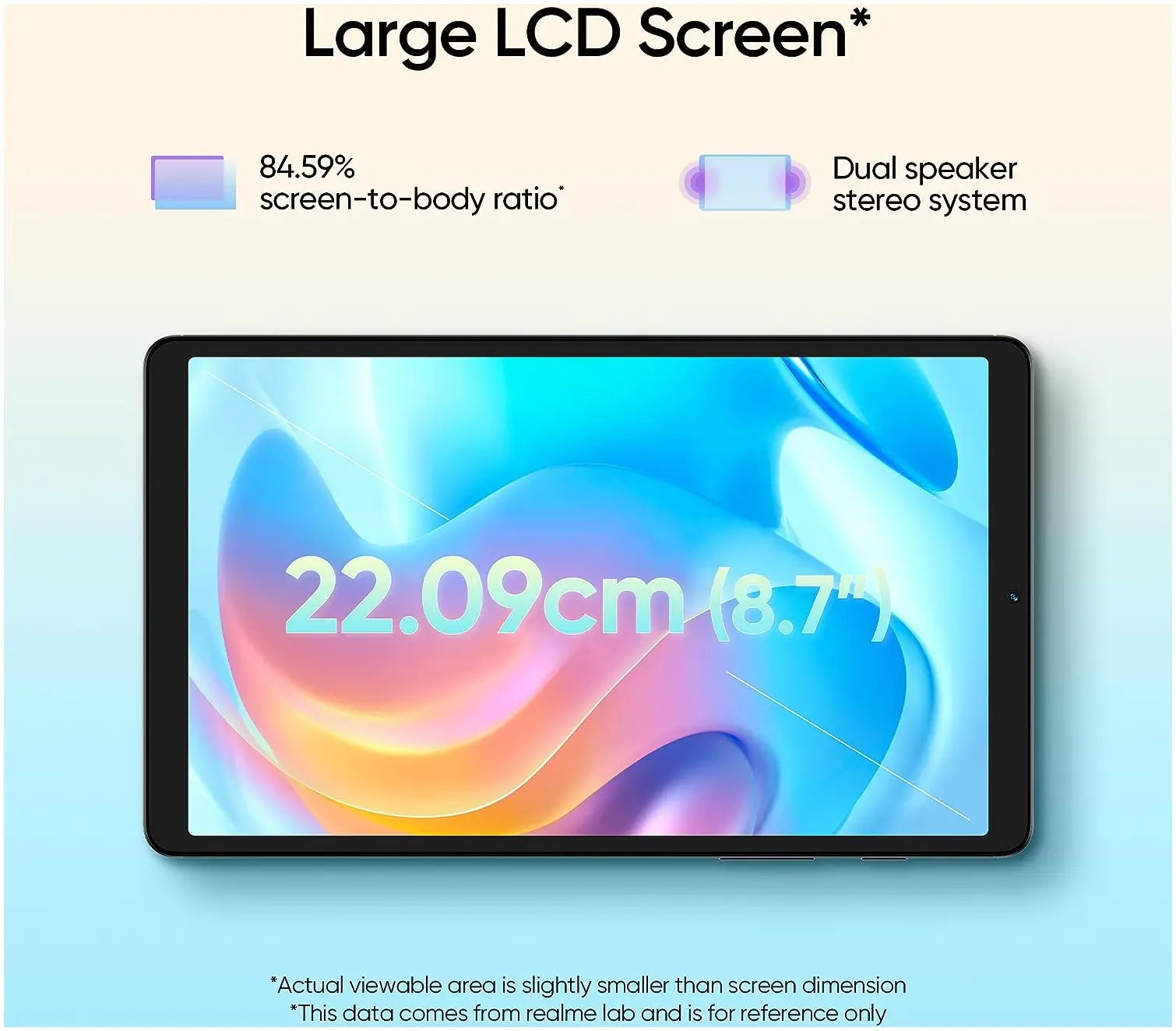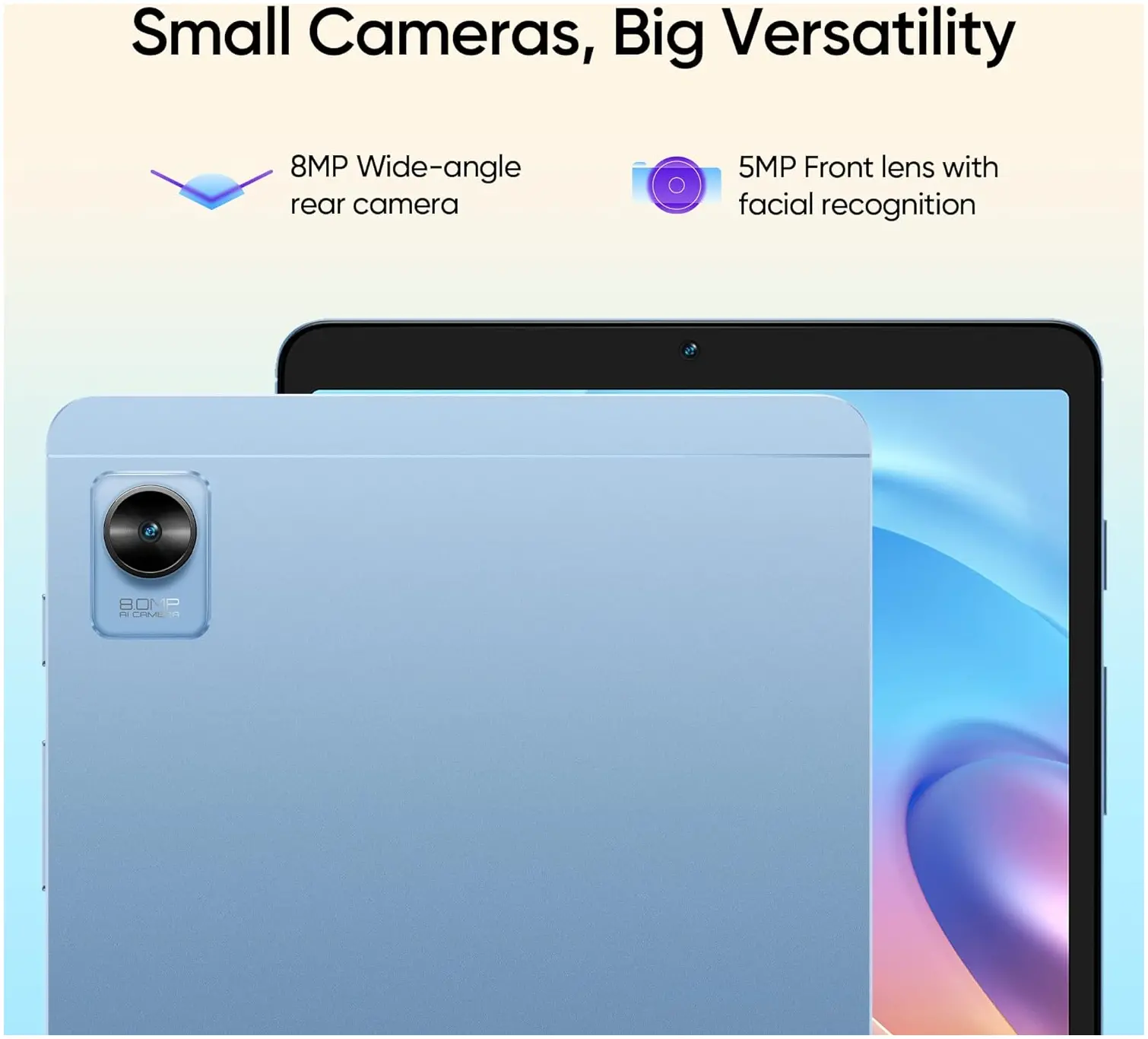 - 22.1 cm (8.7 inch) HD Display |8 MP Primary Camera | 5 MP Front