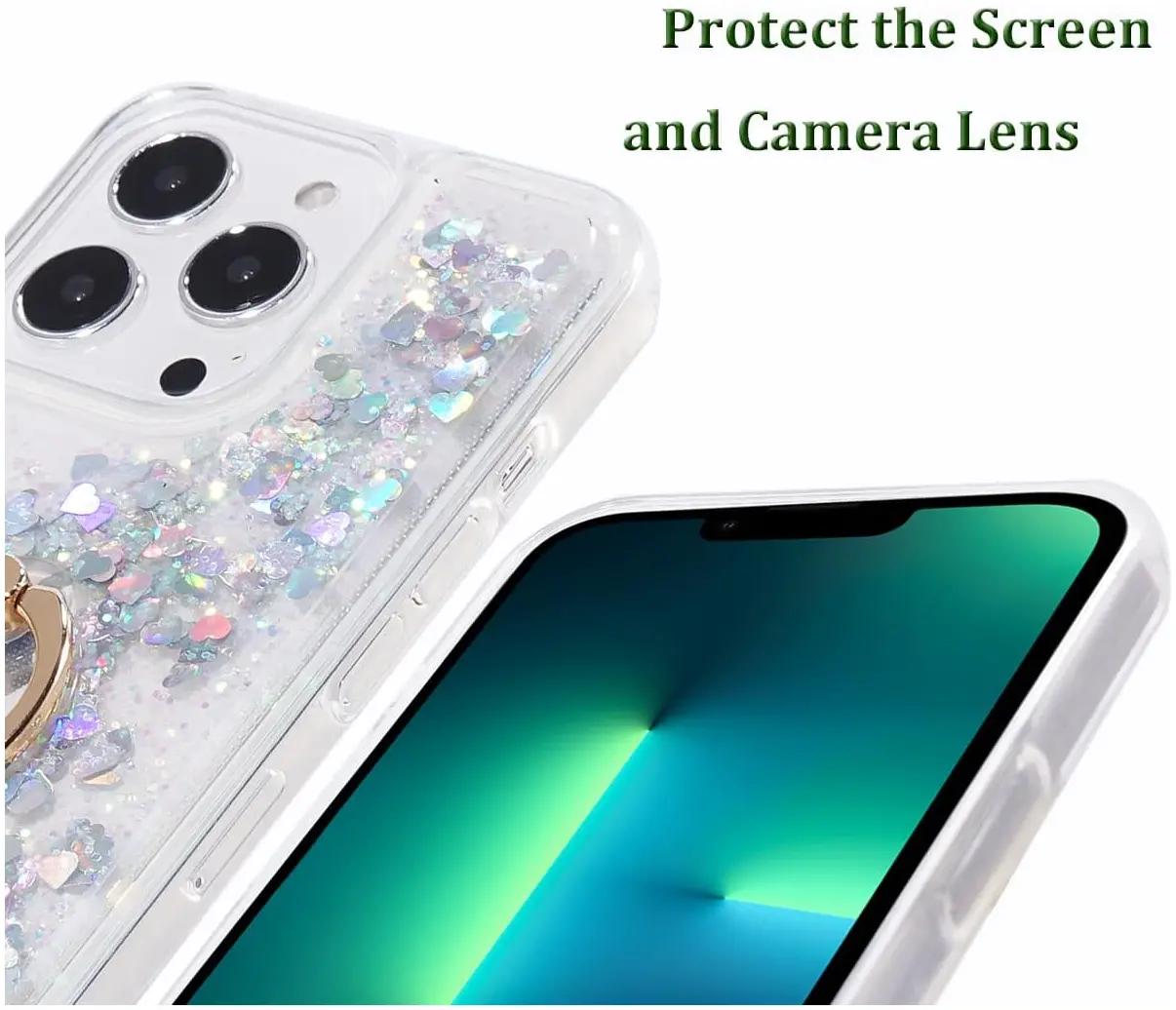 - Glitter Case with Ring Holder Compatible with iPhone 13 Pro Max (ONLY).