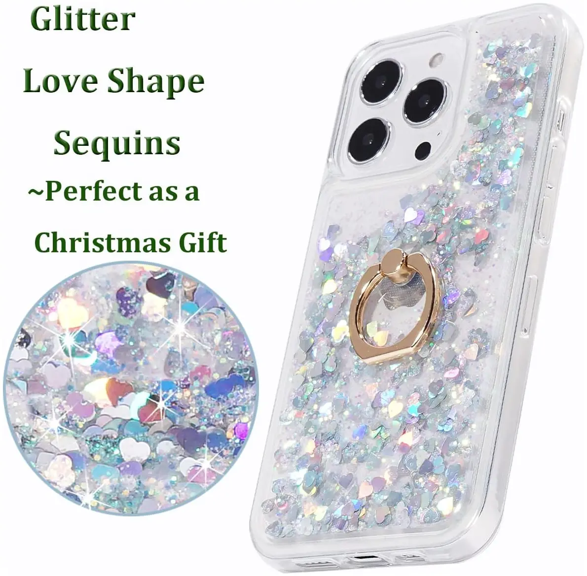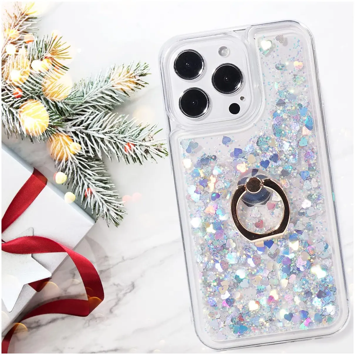 holiday season with our dazzling Silver Liquid Holiday Case, featuring a ring holder kickstand and soft TPU rubber bumper for maximum functionality and style.