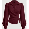 V Neck Top Wrap Front With Lantern Sleeve in Cherry Red