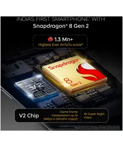 - The flagship Snapdragon 8 Gen 2, 4nm processor is designed to provide groundbreaking performance. The processor has 37% improved multi-core CPU performance over the previous generation. The processor is coupled with faster UFS 4.0 Storage and LPDDR5X RAM for extreme performance. The super-big 3400mm² vapour chamber helps in keeping the phone temperatures in check even at peak performance